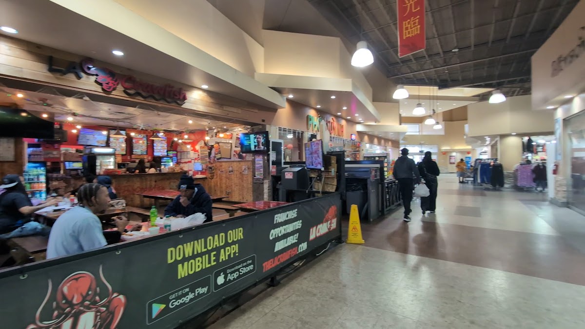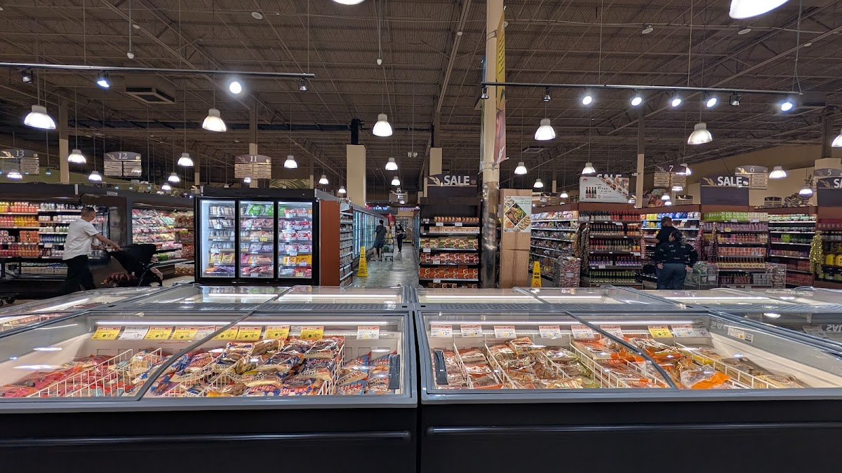 Huge super market with many different vendors/stores and a food court inside. A wide variety of authentic international grocery items. A huge fresh fish aquarium in back. Beautiful and clean. Produce has a large section of various Asian vegetables. The food court is very reasonably priced. Also separate bakery, beauty and clothing/accessories shops/vendors. I could spend all day here. Large parking lot- but it’s always packed.